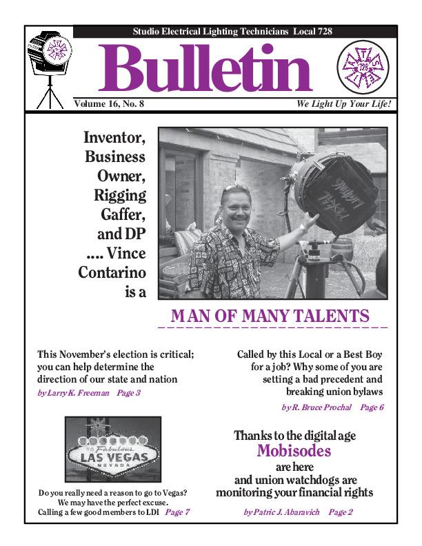 Vince Contarino: Man of Many Talents Mobisodes Critical Election in November Represent the Local at LDI If You Accept a Call, Show Up! Month & Year Aug 2006 Doc Type Bulletins PDF Document 2006August_Bulletin.pdf Thumbnail