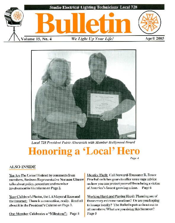 Honoring Hollywood Heard You Are the Union! Preventing Identity Theft Cine Gear 2005 Month & Year Apr 2005 Doc Type Bulletins PDF Document 2005April_Bulletin.pdf Thumbnail