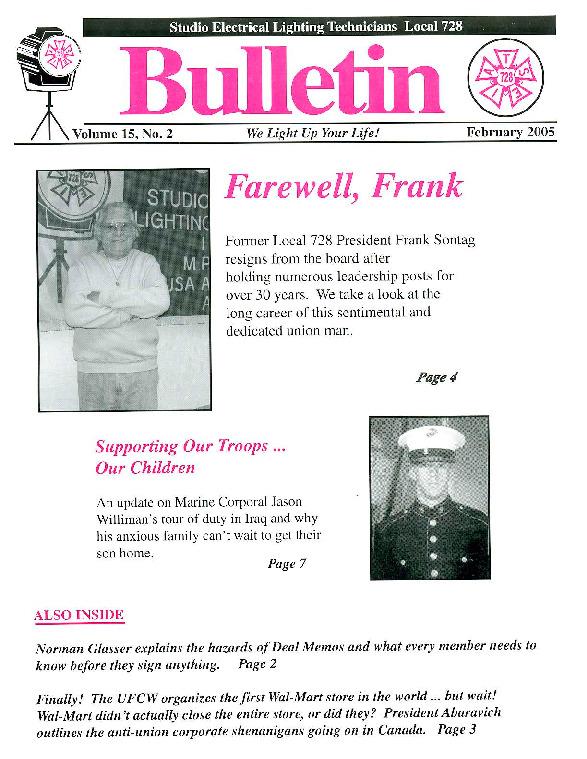 Farewell, Frank Sontag Supporting Our Troops Deal Memos Unemployment Info Month & Year Feb 2005 Doc Type Bulletins PDF Document 2005February_Bulletin.pdf Thumbnail