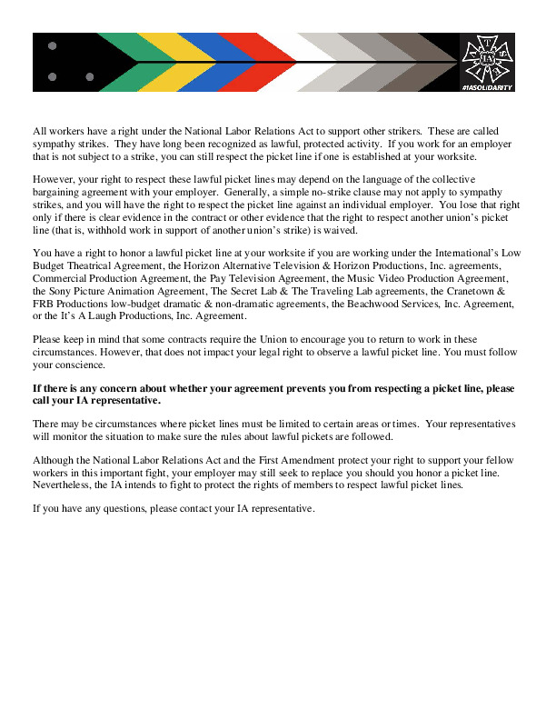 Memo to Members re: Sympathy Strikes