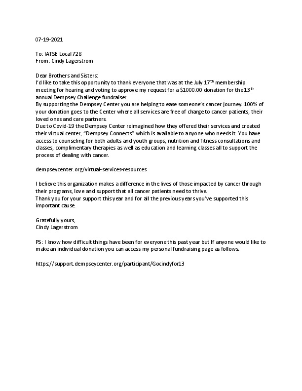 Dempsey Challenge - Gratitude from Cindy Lagerstrom
